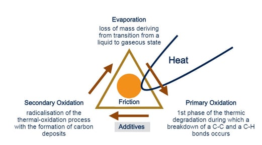 Even at temperatures as low as 100° C, heat can have devastating effects on your mechanical device due to a reduced thickness of the active lubrication film, which under normal conditions is equal to the diameter of a human hair! Its thermo-degradation rapidly reduces efficiency and kinematic life.